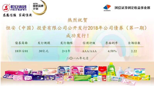 尊龙集团中投主体评级AAA,本期债项信用评级AAA,最终发行价格4.58%,全场申购66.6亿,申购比2.22倍。